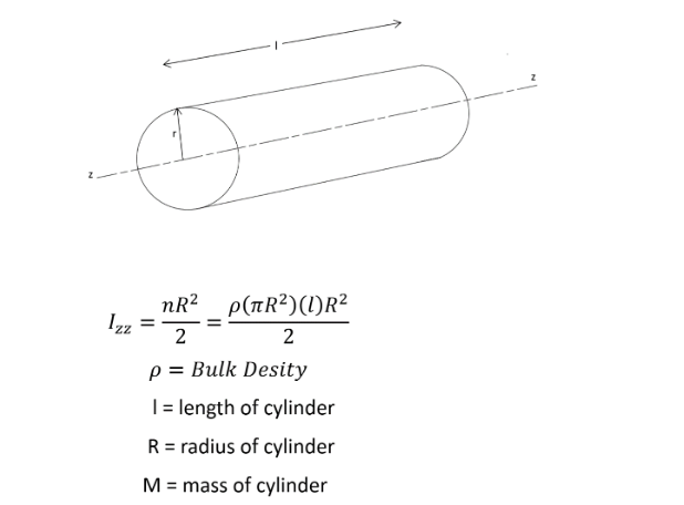 The mass moment of inertia of cylindrical objects about an axis passing through the center can be given by the equation: